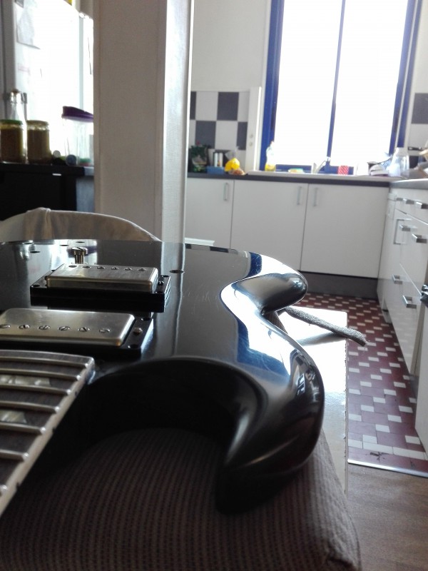 Puis vient le temps de commander le micro bridge. J'avais déjà le manche ( un slash Zebra auquel j'ai ajouté un capot nickel aged ).