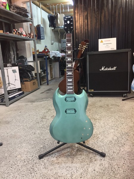 J'ai également une SG spécial cherry de la même année. La mienne est pas mal usée mais il y aucune casse (sauf au niveau du jack). J'ai toute les pièces d'origines (électronique, mécaniques, vibrola, ...) sauf les 3 visses du vibrola et le case. Elle a actuellement des grovers comme la tienne