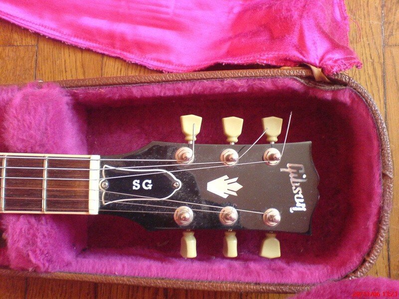 Ma SG était une Standard : capot sur les micros, open book sur la tête de manche, Logo Gibson en nacre, incrustations de manche rectangulaires...