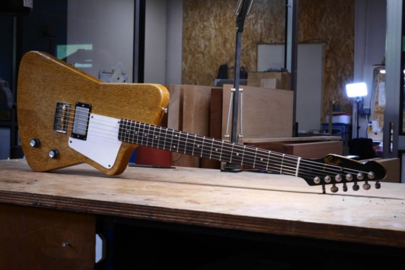 Je vous partage mon expérience avec Tony Girault, chez qui j’ai récupéré ma guitare hier. Il s’agit d’une Supernova (une California en plus petit, diapason type Gibson) custom : corps korina avec un chanfrein type « German curve », vernis ultra fin, table peinte (mais pas le reste), manche vissé érable, touche palissandre, P90 en manche et humbucker en chevalet, vibrato type jazzmaster (un Descendant, bien mieux qu’un Fender), pas de tonalité. Un mélange Gibson / Fender dont je rêvais depuis longtemps, le tout pour un tarif très correct (moins qu’une Gibson Le Paul Standard).