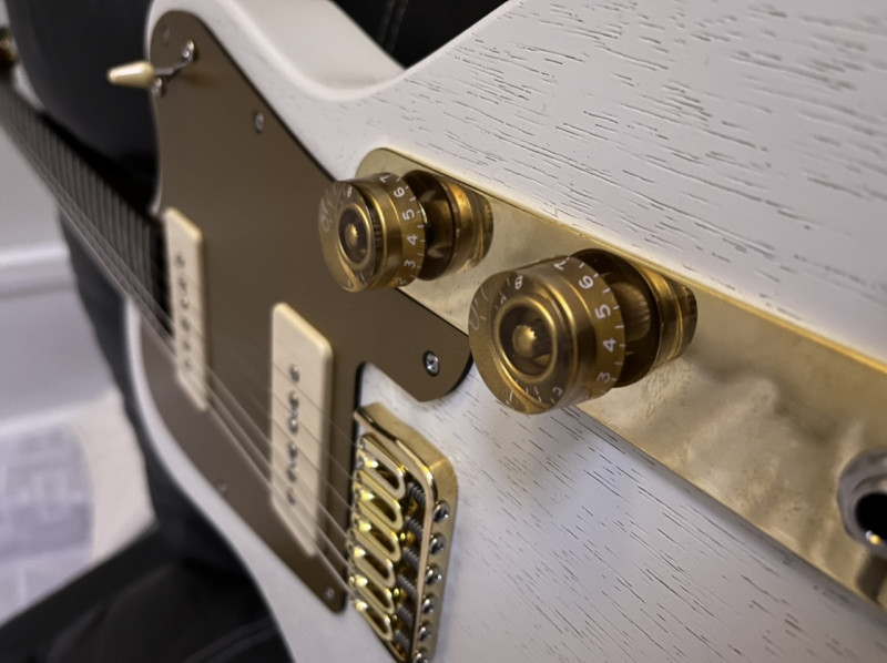 @Gromousse : Tu as fait des modifications au cours de la fabrication ? au début tu évoquais une teinte orange "type Gretsch", une plaque gravée... c'est des choix perso ou en collaboration avec T.Girault ?