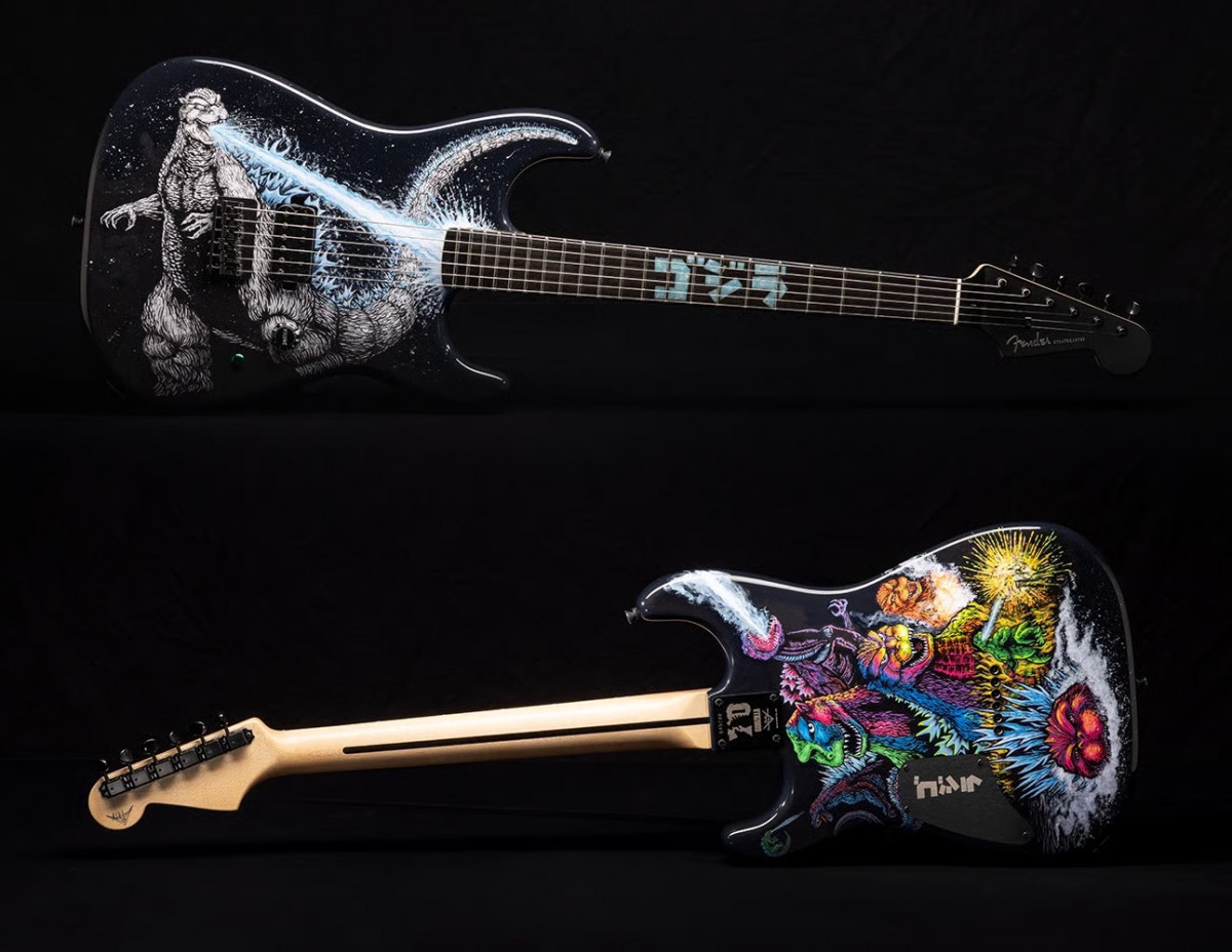 ), chez Fender on ne fait pas dans la demi-mesure avec 3 Stratocaster Custom, à l'effigie de la célèbre créature du cinéma nippon.