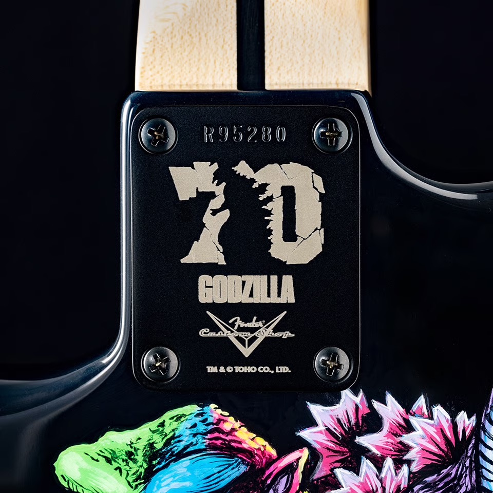 MONSTER HUNTER l'année dernière, Fender Japon ne pouvait pas passer à côté des 70 ans du "kaiju" (monstre) le plus connu de l'archipel. Même si la marque de guitare arrive un peu en retard (on est plus proche des 71 ans...