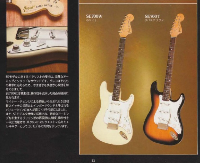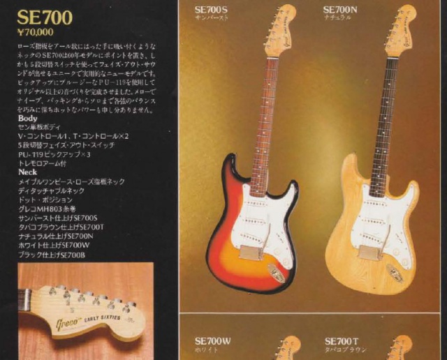 Modèle SE700 - 2 tons SB - touche palissandre - "early sixties" (janvier 1979, mais vu les catalogues Gréco d'époque, je pense plutôt à un modèle 1978 sortie avec un peu de retard).