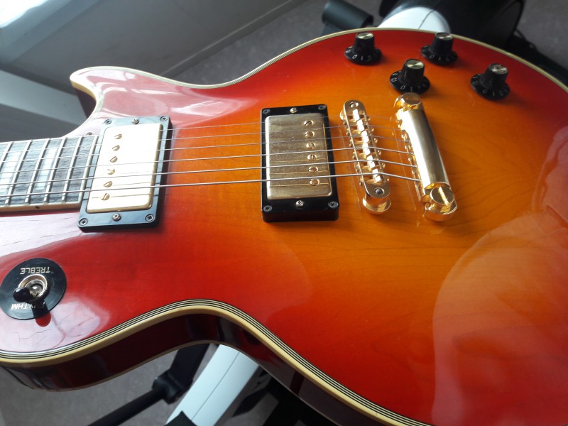 Depuis que j'ai cette Epiphone - et tu te doutes bien que j'ai eu beaucoup de guitares entre les mains et que j'ai beaucoup d'heures de vol aussi - et bien je ne ressens plus le besoin d'aller chercher une autre Les Paul. Non seulement le manche, le confort de jeu sont pour moi parfaits mais en plus je trouve qu'elle sonne superbement alors même une bonne année après son achat - on peut donc dire que la lune de miel soit passée - je n'ai aucune envie de m'en séparer ni d'en chercher une autre. La seule chose que j'envisage c'est un changement de l'électronique d'origine et éventuellement des micros pour rendre au mieux ce que la lutherie est capable de donner.