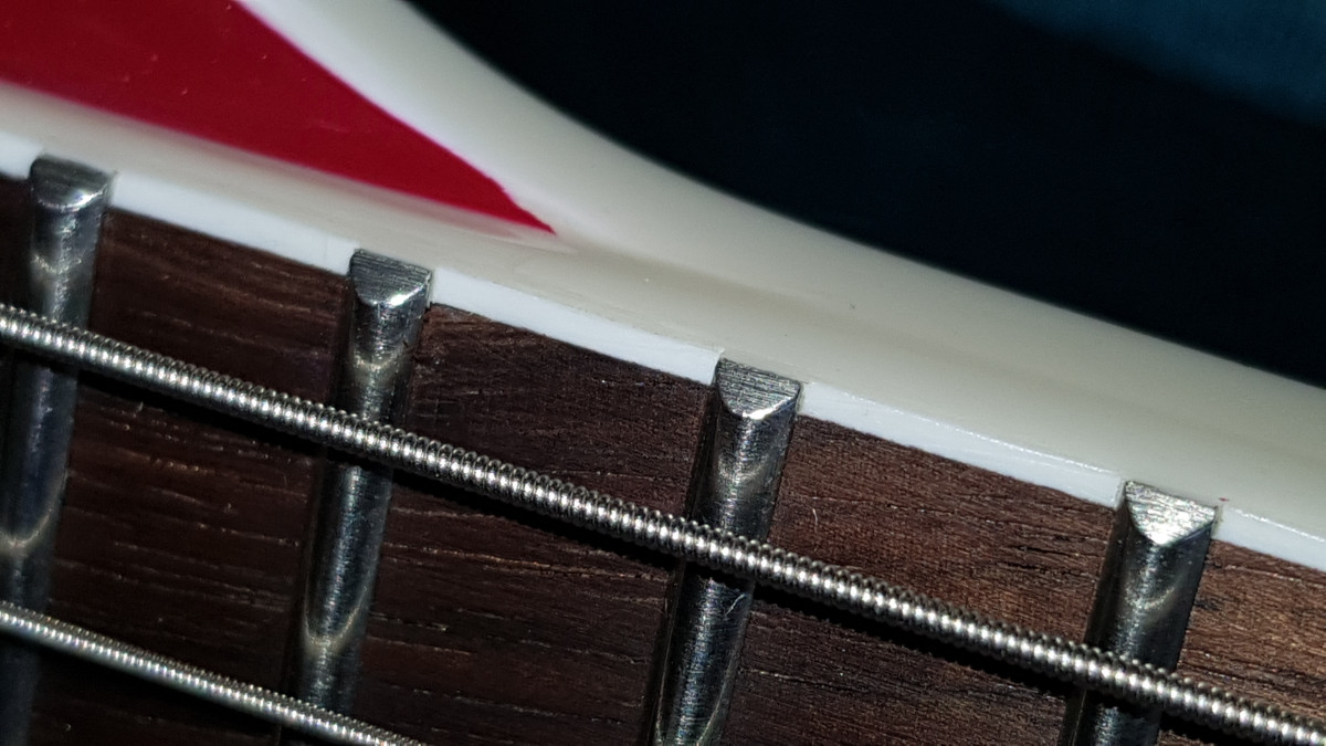 Par contre, je ne pense pas que ça vieillit mal (expérience limitée cependant, 4-5 ans) et il y'a un vrai bénéfice: le laurier est moins sensible aux changements d'hygrométrie - jamais de problème de touche qui se contracte et fait dépasser les extrémités de frettes.