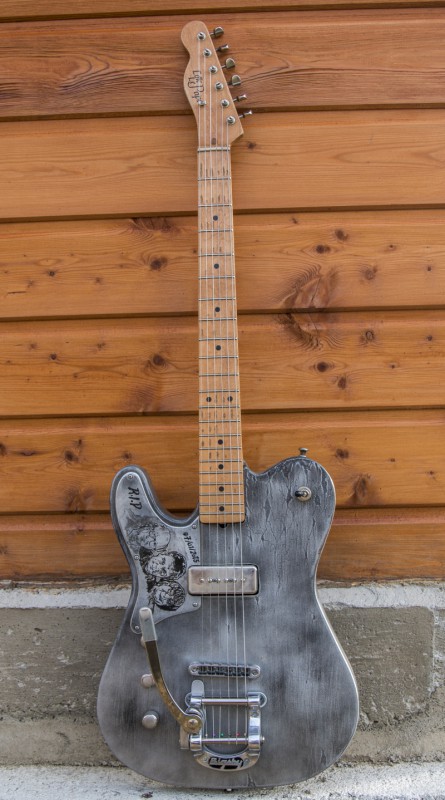 Ce projet de Telecaster on avait commencé à en parler en 2014 avec Loïc. La dédicace était pas prévue, évidemment. Il se trouve qu'il l'a terminée le jour de la tuerie à Charlie Hebdo. il a du m'appeler un ou deux jours après, on était sonné lui et moi par ce qui s'était passé, comme beaucoup. il m'a parlé de la dédicace. je crois qu'il l'avait déjà faite, ou en passe de le faire, la guitare venait juste d'être terminée...C'est un drôle de souvenir.