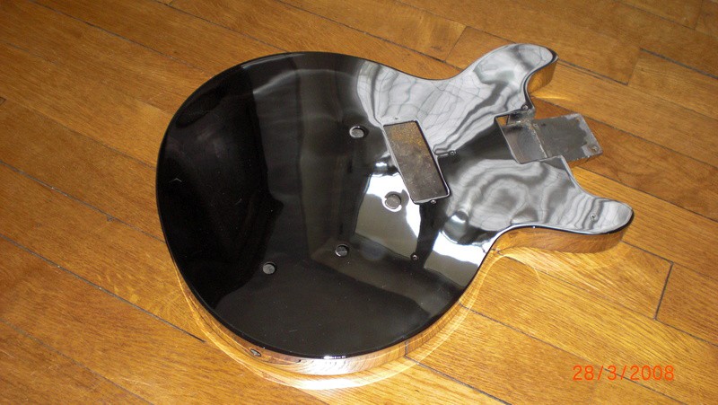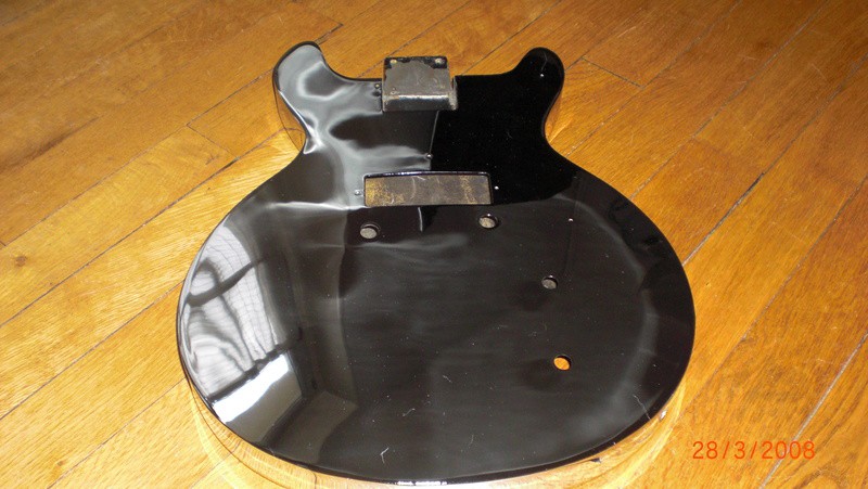 Du coup, il y a 2 ans, je décape tout, je ponce tout au papier fin à l'eau et je vernis la guitare !
