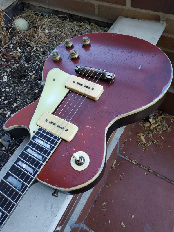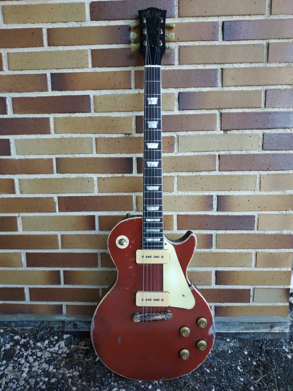 Voila bref, en trainant ici fin 2018, j'ai vu de jolies LPP bien reliquées, ça faisait des annés que je voyais plus de LPP et j'ai vraiment craqué sur le look et l'idée de me faire faire une LPP à mon gout m'a titillé. J'en ai parlé à Loic, on est parti sur un projet de 54 Red, car j'avais laissé passé une 54 Red il y a 7 ans, qui aujourd'hui est dans les mains de Jared James Nichols, et donc après quelques discussions, j'ai décidé de faire confiance a Loic et de me faire faire une belle LP rouge en P90