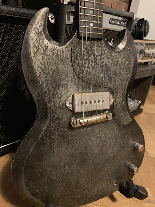 Depuis quelques temps, je m'occupe à bourriner ma Steel G kid « scratch engraved » old silver, gratte que j'ai pu récupérer grâce à un échange avec une Strat Lone star Us. (bonne guitare, avec un son de fou avec ces micros, je vais d'ailleurs m'en acheter pour upgrader une autre de mes Strats)