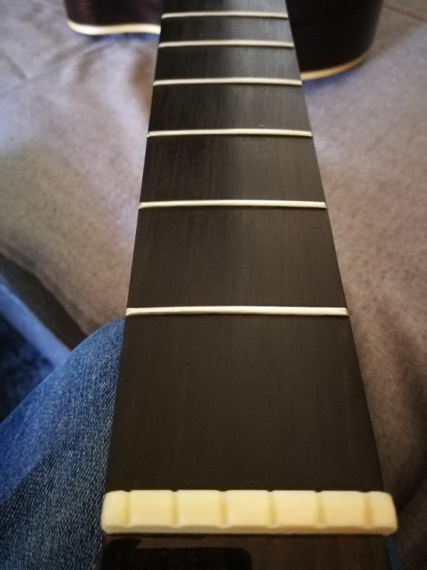Le manche en plus d’être crossover est très légèrement courbé pour faciliter le jeu et le frettage est top
