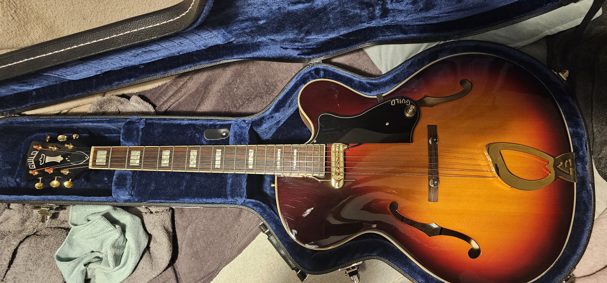 Pour les besoins d'un spectacle, je cherche une guitare jazz proche de ce qui se faisait dans les années 45-50. Je ne vais pas prendre une originale mais une copie fera l'affaire.