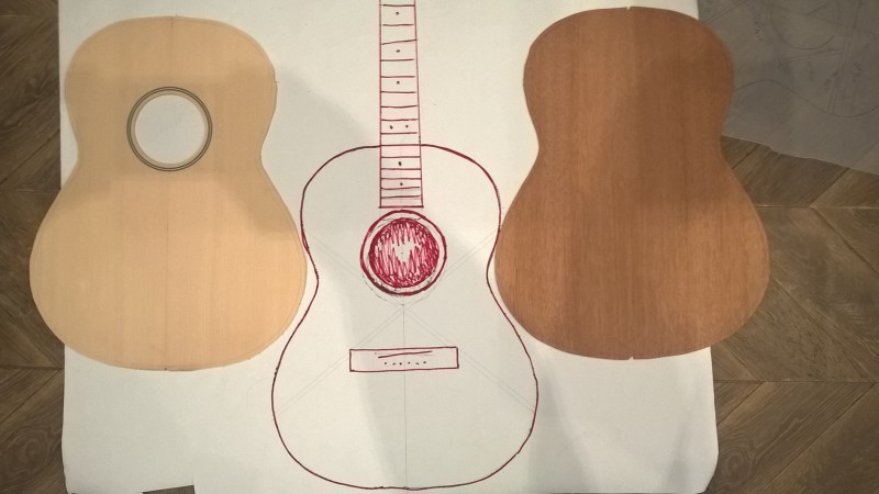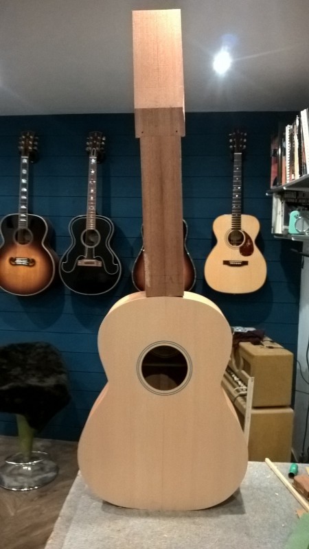 J'ai choisis fond et éclisses en acajou, table en épicéa, manche en acajou