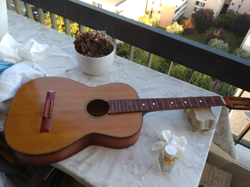 J'ai sauvé de la destruction une petite guitare sèche italienne des années 1960, de marque Carmelo Catania. Après un bon nettoyage elle semble prête à jouer, mais j'hésite sur les cordes à utiliser: nylon ou acier?
