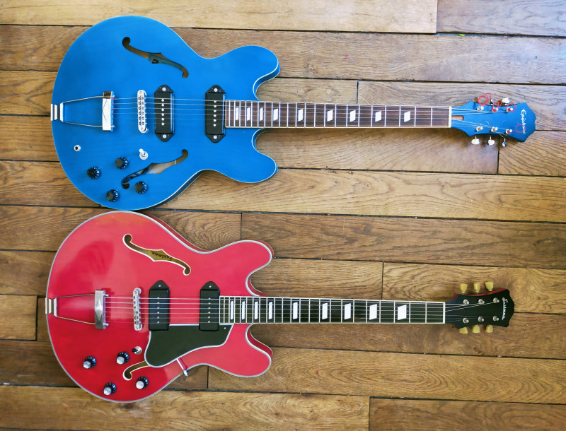 Après avoir testé une bonne petite Epiphone Casino Worn pendant 1an et avoir trouvé que ce format de guitare était idéal pour moi (quasiment les électriques les plus légère, et le Hollybody Sound impec' pour Jazzer)