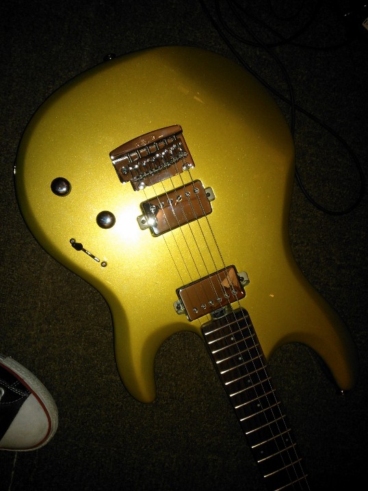 sur ma Washburn Dime V où Joel est repassé en mono micro et a refait la peinure, on ne le sens pas mais on le voitselon certains angles de luminuosité