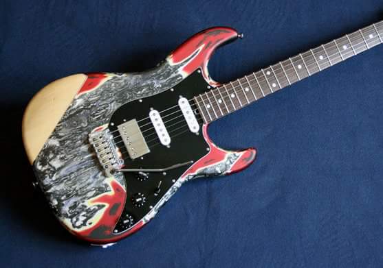 Je vais surement mettre en vente ma Studio Elite Burning Water signée par Landau au niveau de la découpe pour le bras, avec le manche Birdeyes Fat 59, des micros Bare Knuckle (Crawler et Irish Tour), et l'ajout du Midboost à la manière de la 2k.