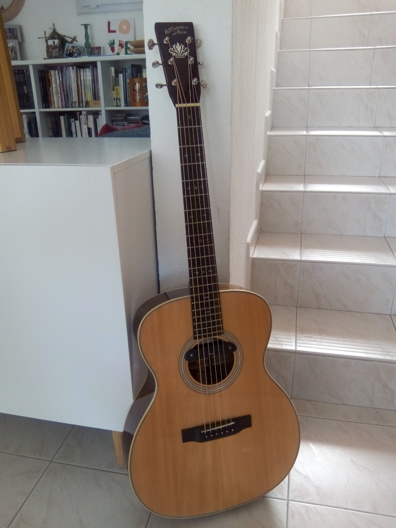 Dans ma quête d'une guitare acoustique, et en attendant de trouver "mieux", je suis tombé par hasard sur une Recording King RO-26 (dans l'esprit d'une 000-28 EC il me semble).
