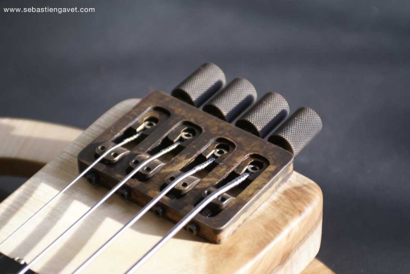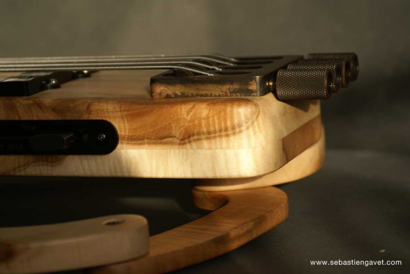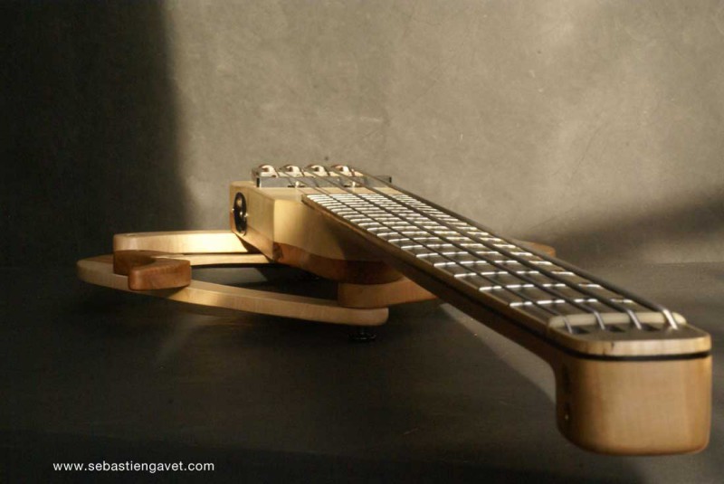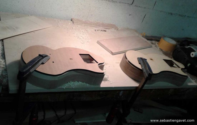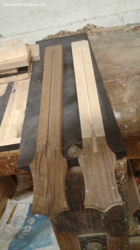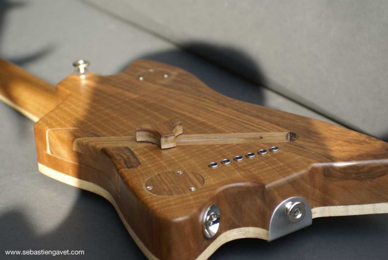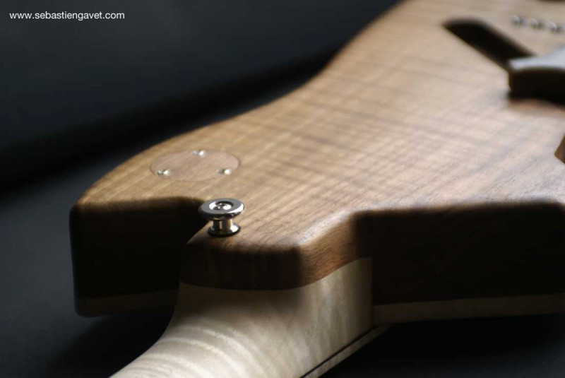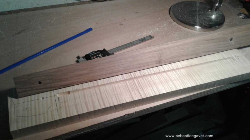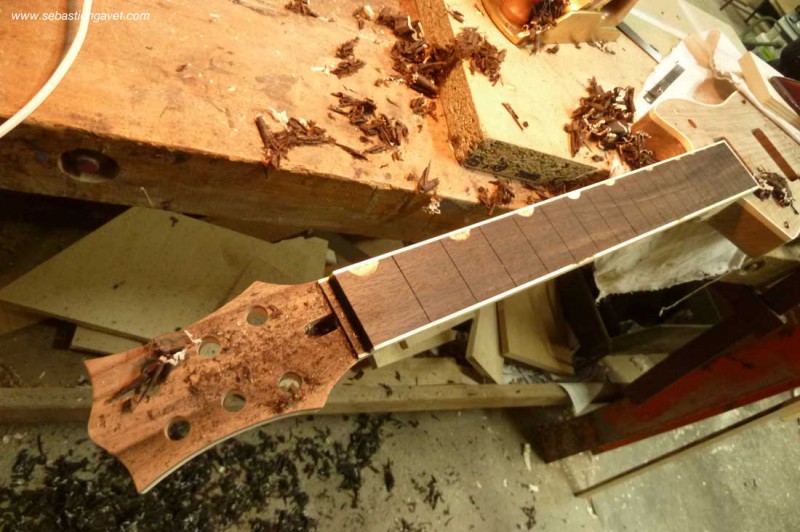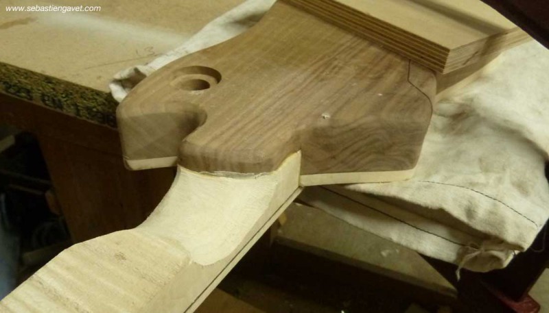 --Différents perçages et défonces pour la tête de la guitare tour bus.