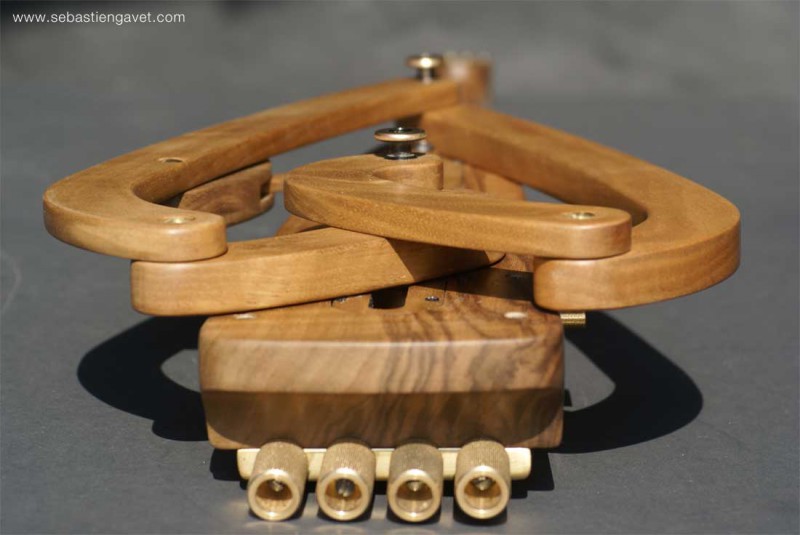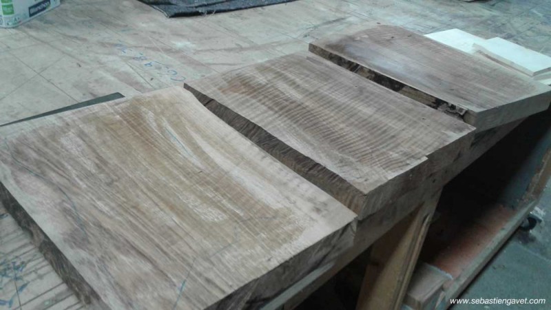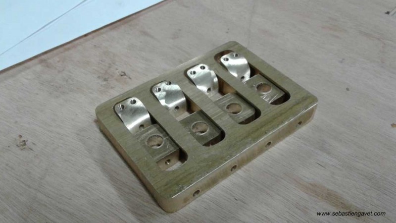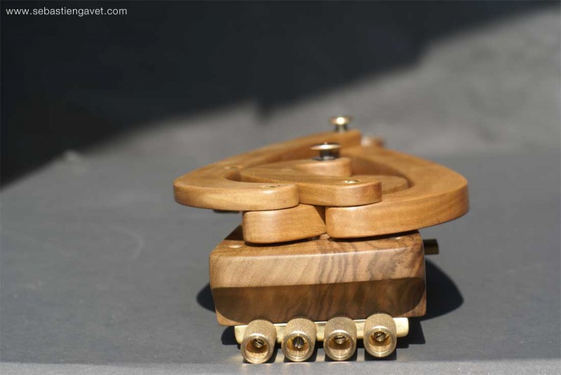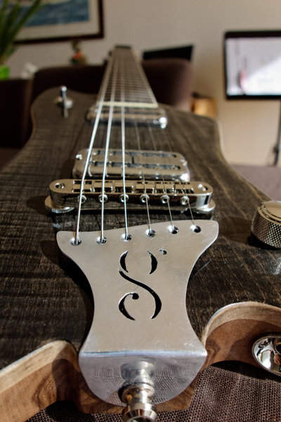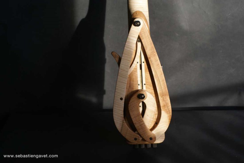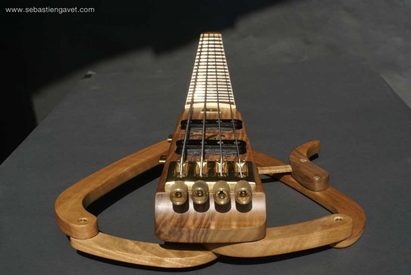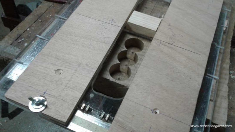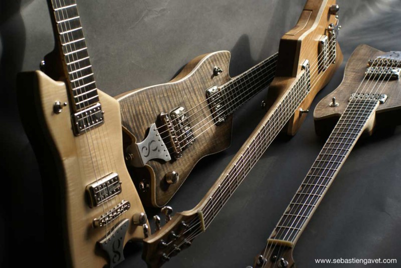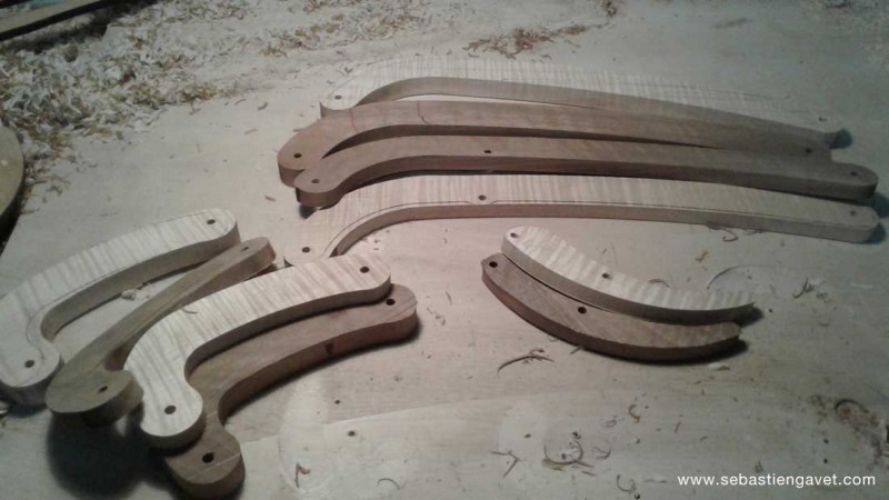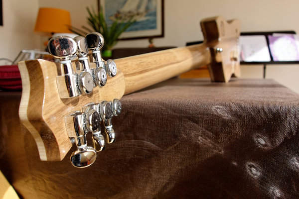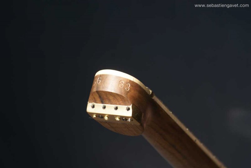--Différents perçages et défonces pour la tête de la guitare tour bus.