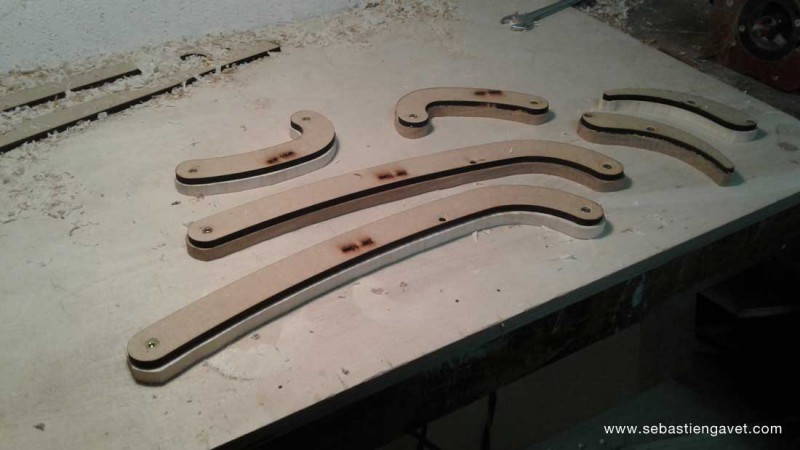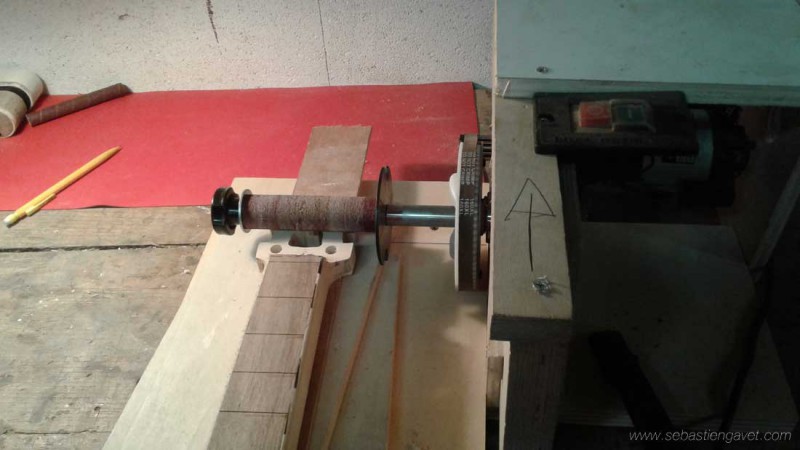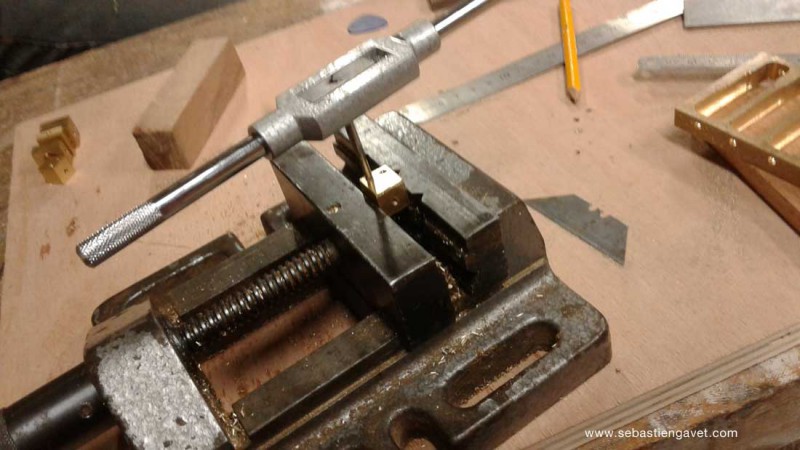 Pour le chevalet, c'est un chevalet maison que je mets au point pour l'instant à la défonceuse, à la scie à métaux et à la lime sauf pour les molettes que j'ai fait réalisées. Ça prend quand même pas mal de temps à faire mais bon.... J'ai ces quelques images lors de sa fabrication