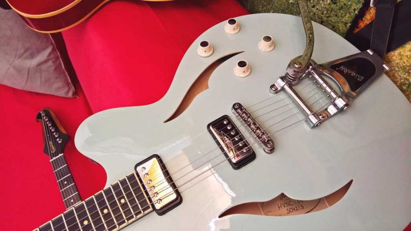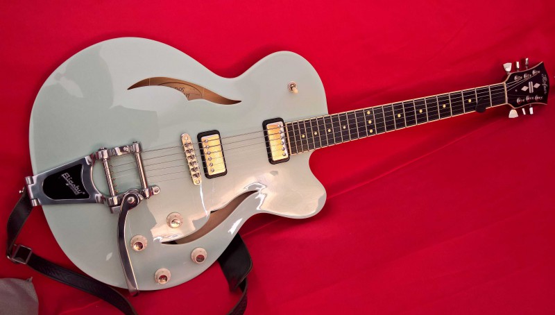 Vous me voyez venir - j'avais repéré depuis longtemps les Verythin d'Hofner, mais plus par curiosité qu'autre chose, leur look ne me faisant pas plus vibrer que cela. Jusqu'à ce que je tombe sur des photos de Paul Weller avec une Verythin, mais la Single Cut en mini-humbuckers Diamond, et là ça change tout: cette version est à tomber! C'était il y'a deux-trois ans, mais finalement:
