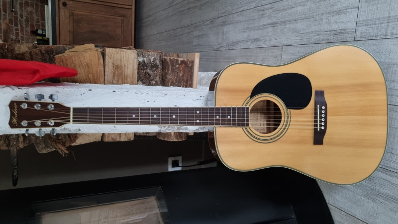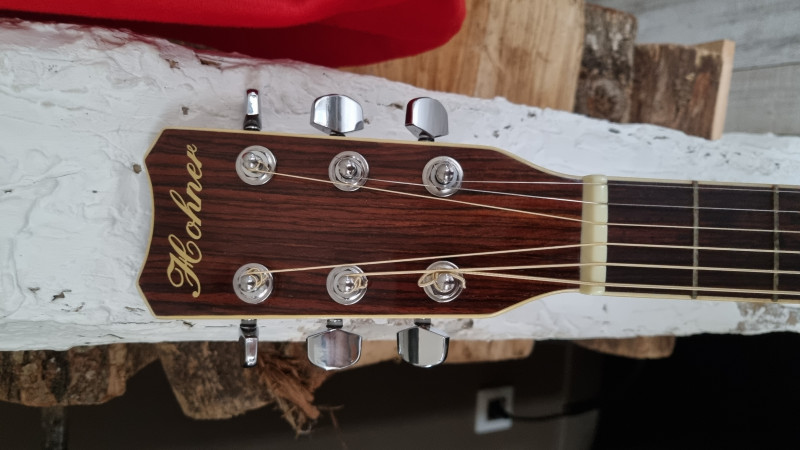 Merci de m'accueillir parmi vous. Je suis allé chercher une petite guitare folk ce matin. Une Hohner HW720 S dans un état proche du neuf, elle est selon la vendeuse, de 1995. Avez vous quelques infos à son sujet. Je l'ai acheté 70 euros. Voici quelques photos. Pour info je lui mis des cordes élixir en arrivant et elle a un son vraiment top selon moi. Si certains connaissent ce modèle, j'aimerais avoir vos avis. Merci d'avance. Dom.