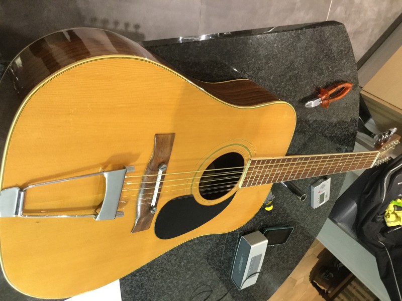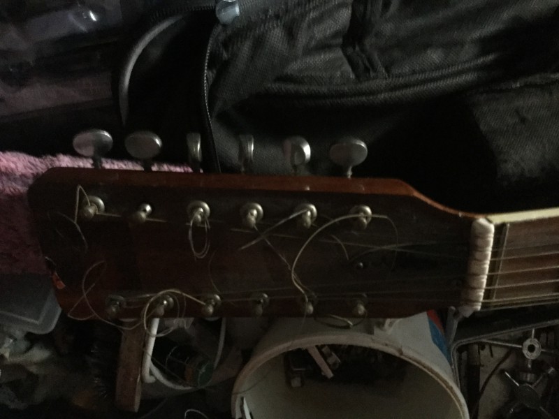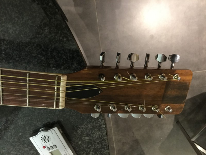 J'ai enfin fini la petite restauration toute bête : lavage integral àl'alcool à brûler, passé d'huile de lin ( attention à ne pas en mettre trop !! ), nettoyage de toutes les pièces métalliques, et changement des mécaniques. Petit bémol il me manque un œillet que j'irai chercher bientôt et une corde a cassé pendant leur montage.. Voici du coup les photos un peu genre avant/après même si on voit pas grand chose :