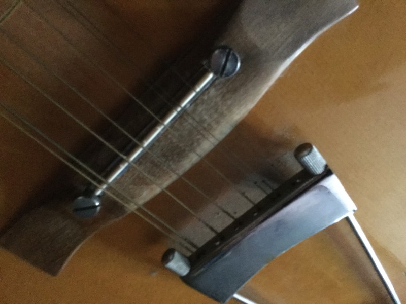 Et voilà!! Je la trouve vraiment tres classe, elle est gigantesque ( véritablement une bûche comme manche ) du coup très dure à jouer.. Mais le son !! Ha mes aïeux !! Terrible !! Aigus clairs très reconnaissables, basses profondes... Elle est parfait pour le bottleneck, pas un grésillement de trop ( il en faut quand même.. ) et elle restituez toutes les cordes sans faire un grand brouhaha médium.. je suis vraiment impressionné !! En tout cas voilà j'espére qu’un des futurs chineurs qui seront tombés sur cette gratte, tomberons sur cet article pour leur donner envie, allez y les yeux fermés ! Sur ce, bonne grattouille, j'espère qu'il y en a d'autres qui connaissent ou des intéressés en général.. à la prochaine !