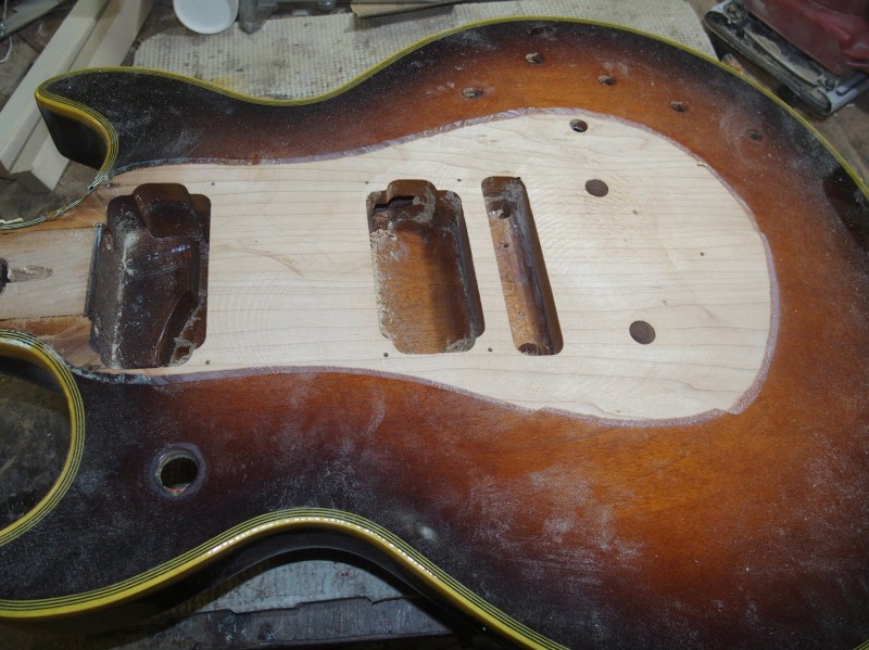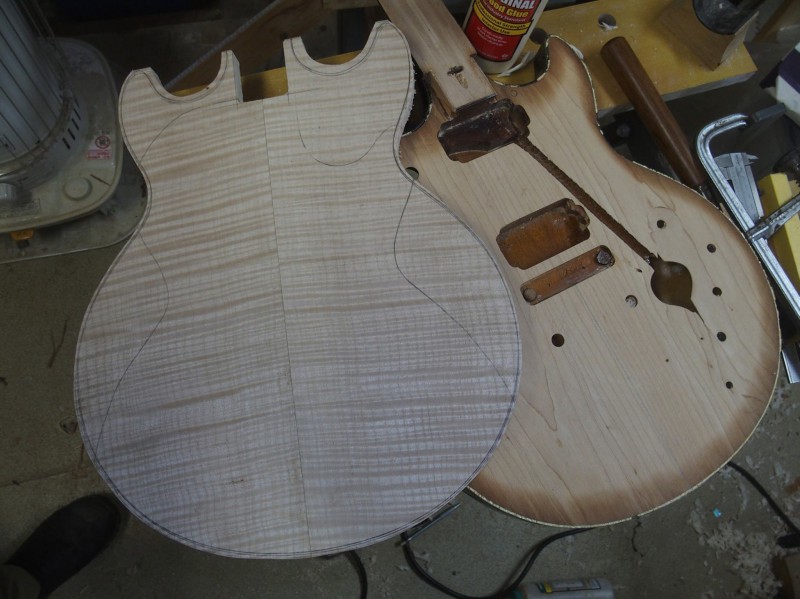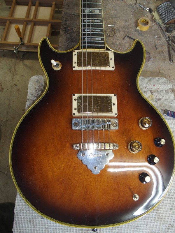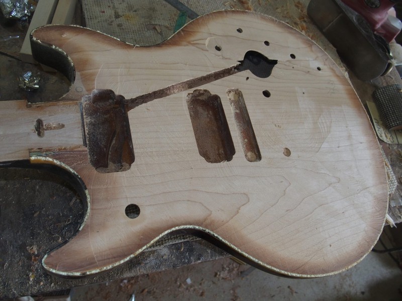 Notre ami "THORN TREE", un luthier japonnais, a reçu une demande particulière: il fallait qu'il change la table d'une Ibanez 2622 pour une table genre "flammée".