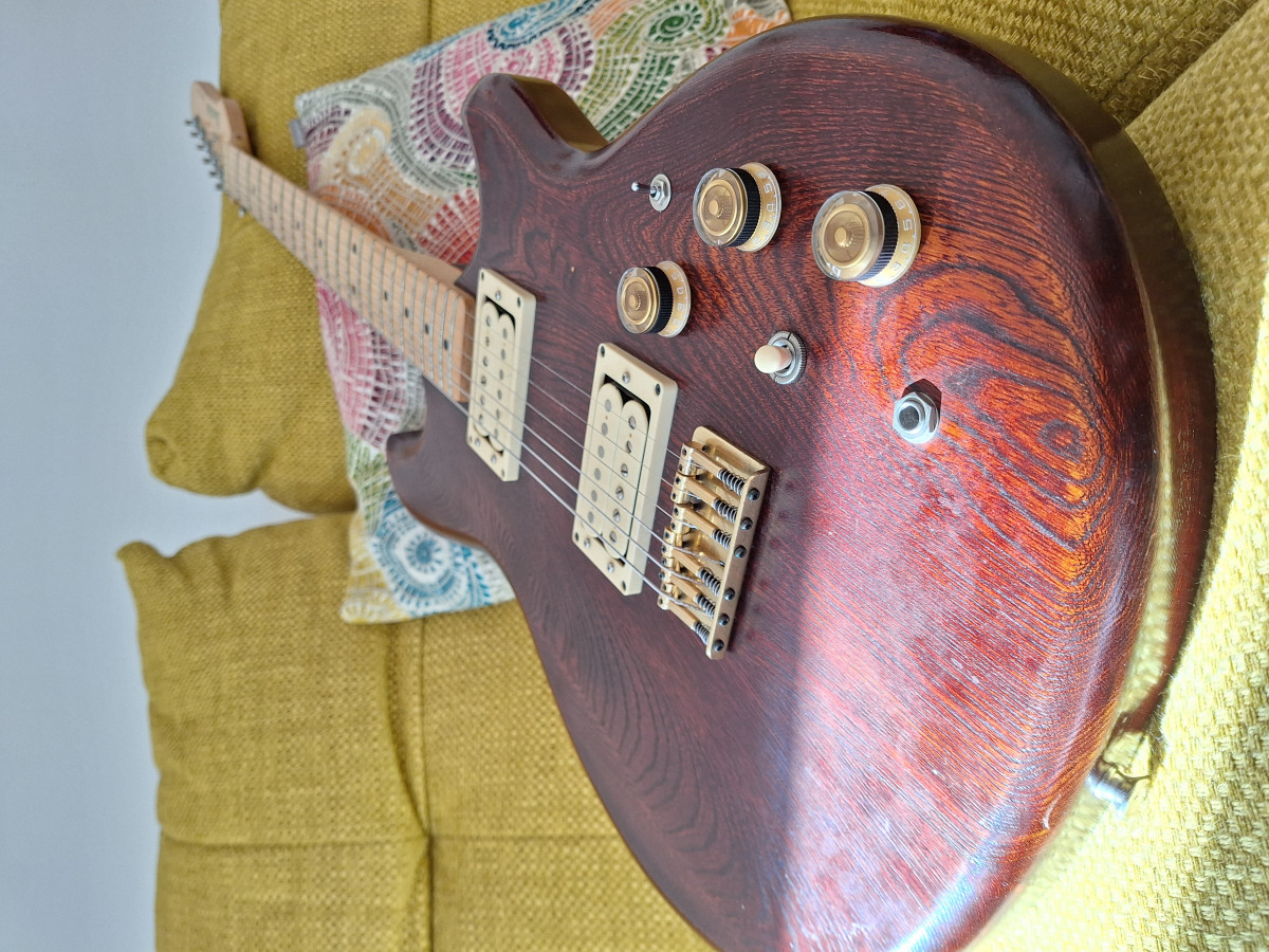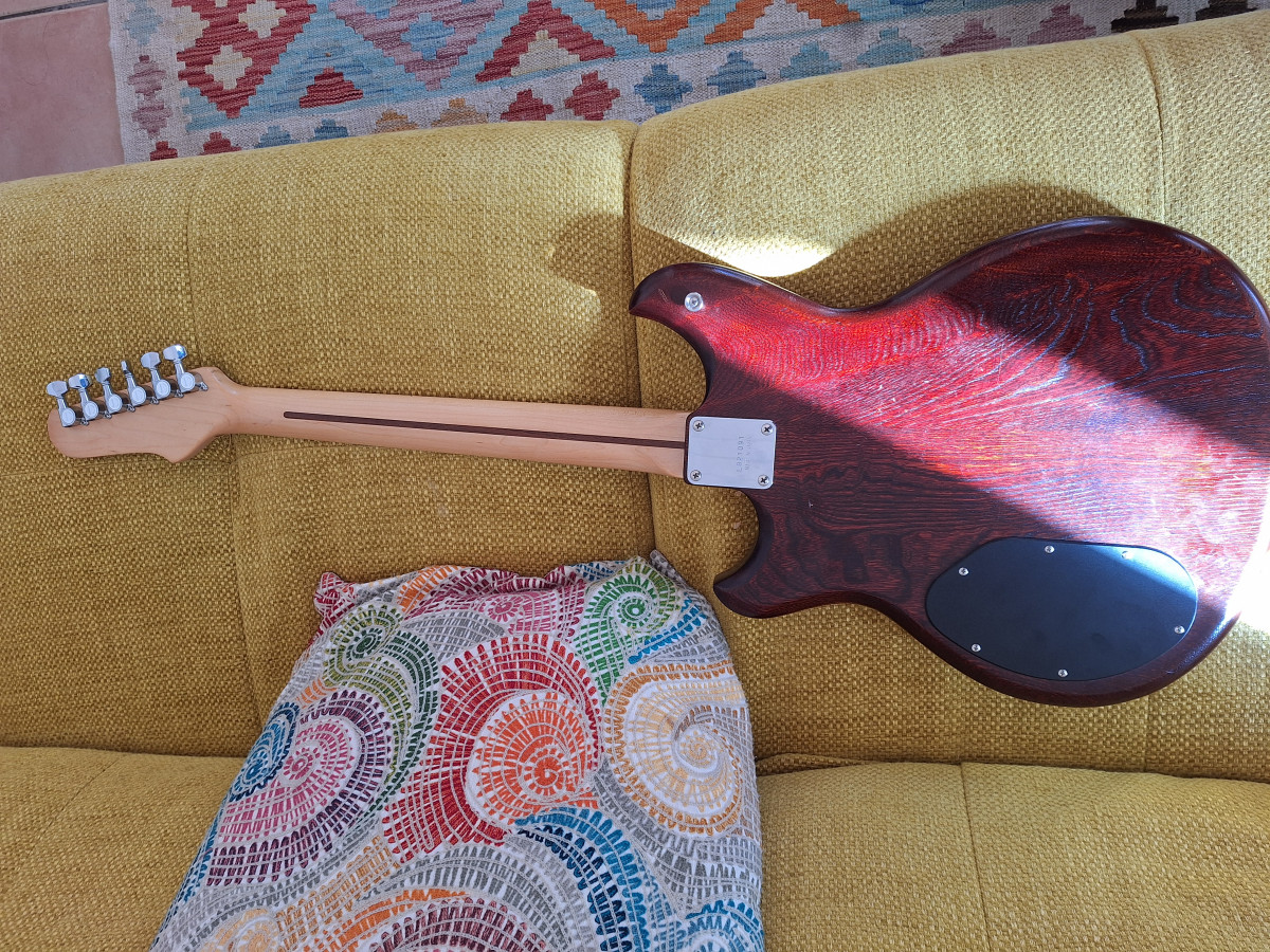 D'après internet, c'est un modèle entrée de gamme hors catalogue fait avec des surplus de corps de Studios et de manches de Blazer. Les micros sont d'origine (des Maxon super 70s) avec un switch de phase.