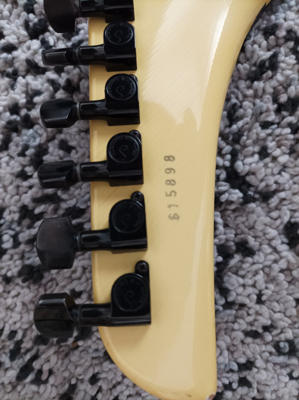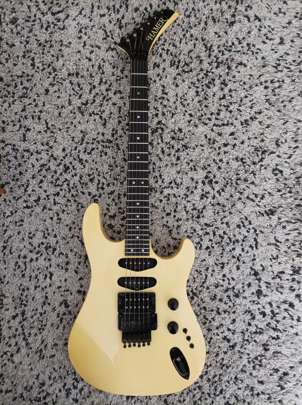 Bonjour à tous, je viens de récupérer ma vieille Hamer qui avait besoin d'un passage chez le luthier. D'après les photos que je vois sur le net, j'ai l'impression que c'est une chaparral mais j'aimerais bien l'identifier plus précisément et savoir approximativement combien elle vaut!