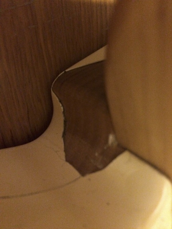 également une photo d'un endroit ou le vernis a sauté, c'est pas super facile à voir mais j'avoue qu'il me semble effectivement beaucoup plus épais que sur ma Strat+ USA de 94