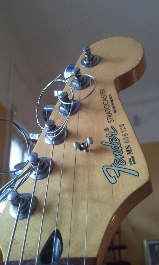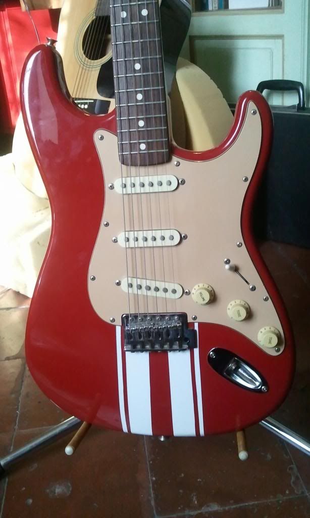 Chouette ce sujet : Alors voilà la mienne, achetée neuve en 1992, n° MN005120 de 1990 apparemment, est-ce une "Standard" ou quelque chose d'autre ? Elle est entièrement d'origine, (sauf les bandes blanches) son manche est merveilleux, sa lutherie, sa résonance impeccables !