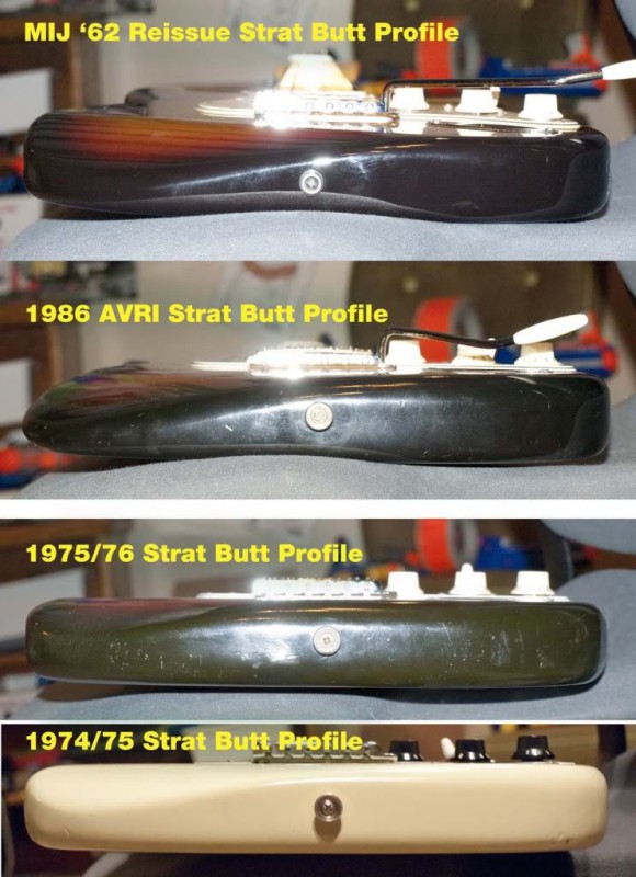 Il faut faire attention parce qu'à l'époque, certaines strat standards Dan Smith era (donc avec les 3 potards) on des côtes identiques, et ça a même continué après l'ouverture de l'usine de Corona, car c'était un peu la pagaille pendant et juste après la période de transition et de "rodage" du nouveau site de production. Par contre, on ne peut pas se tromper avec le verni nitro pour les corps RI.