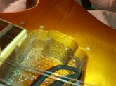 Donc je fais appel à vous pour essayer de déterminer cette gratte, sur laquelle je n'arrive personnellement pas à trouver une quelconque information, puisqu'il n'y a rien qui ressemble à un numero de série sur la tête ni dans la cavité. Pour info, il y a le binding over the frets