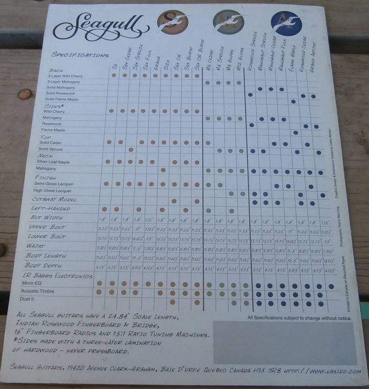 Sinon, il faut interroger Rober Godin (Godin, Seagull, La Patrie...) ou son équipe ici info@seagullguitars.com.
