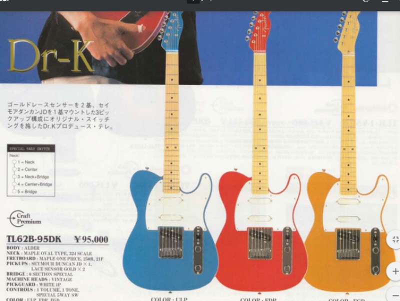Et enfin au Japon depuis 99 ou 2000 (pour les catalogues mais depuis les mid 90's elle se trouvait) la signature Dr.K, typiquement une Nashville, elle se trouve encore pour pas cher et sont vraiment top pour le prix.