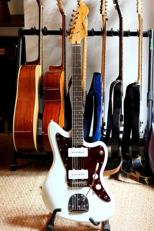 J'entre dans le club des possesseurs d'offset par la petite porte avec cette Squier Jazzmaster CV Sonic Blue (bon, côté couleur, c'est pas flagrant sur les photos).