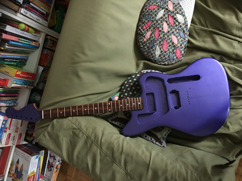Je devais avoir l'air malin à me balader dans le noir une Jazzmaster pluggée dans un mini Marshall à pile fixé à la ceinture... Avec la gratte à l'horizontale en faisant des hauts et bas avec un bzzzzzzzz constant...