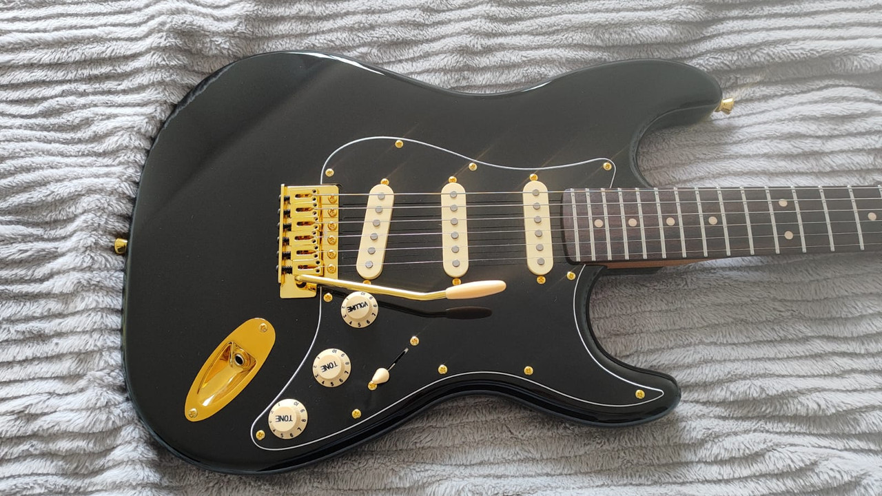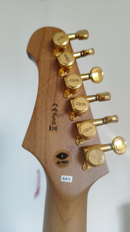 - Gibson SG standard Aged Cherry 2011 modifiée façon Angus Young Custom Shop : https://www.guitariste.com/for(...).html , Fender strat US standard 1989 , Gretsch G5222 , Harley Benton TE 62