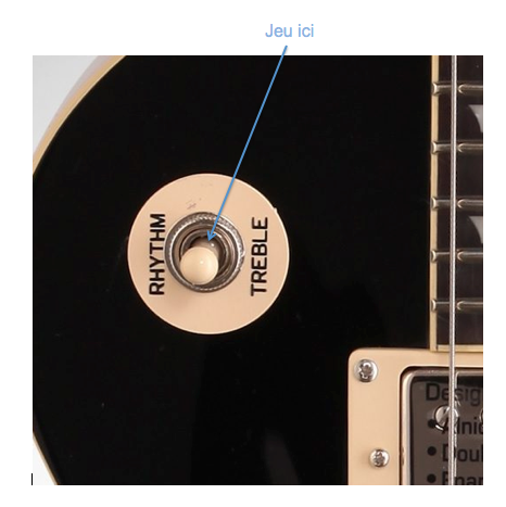 Je souhaiterais savoir s'il est normal qu'en position "milieu", l'interrupteur du sélecteur de micro ait un peu de jeu, il est lâche, il bouge légèrement. Je parle bien d'un jeu à la base de l'interrupteur (voir image ci-dessous). C'est un sélecteur à 3 positions.