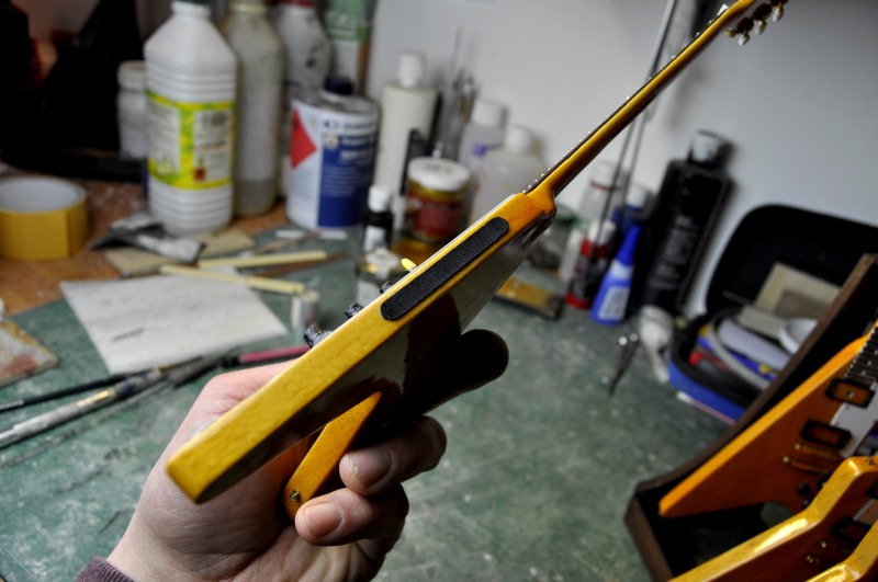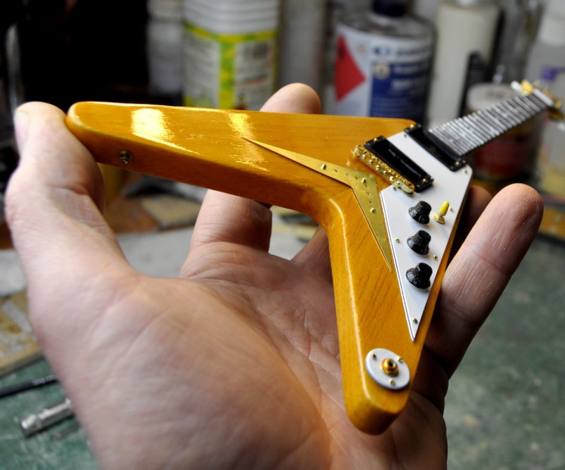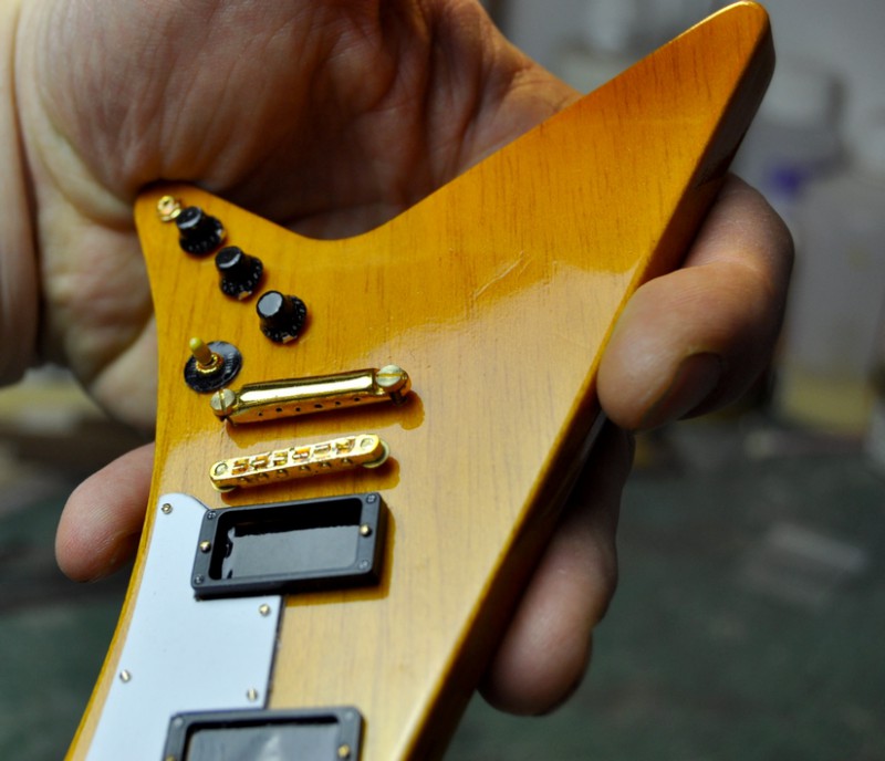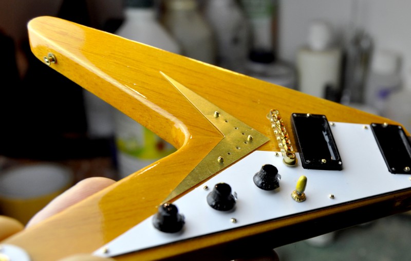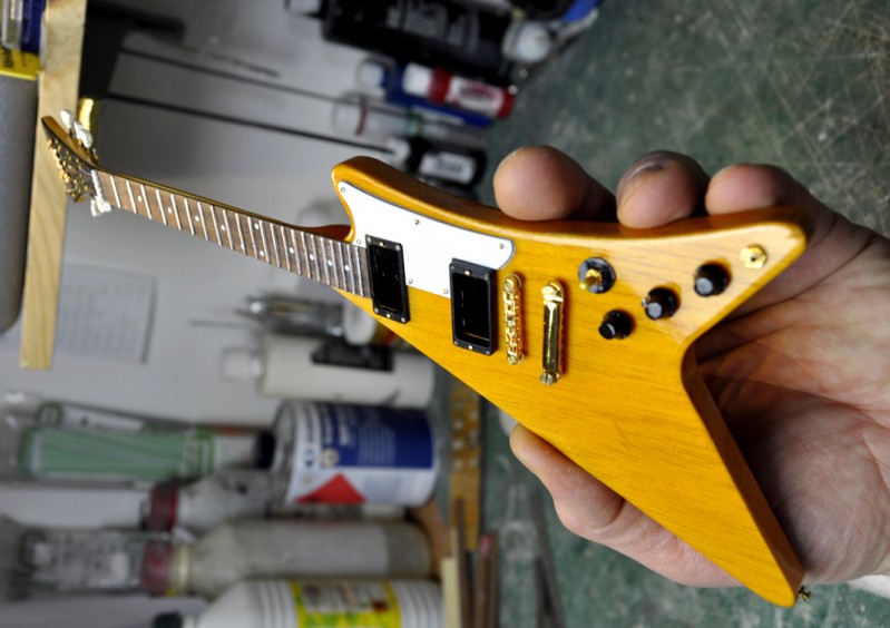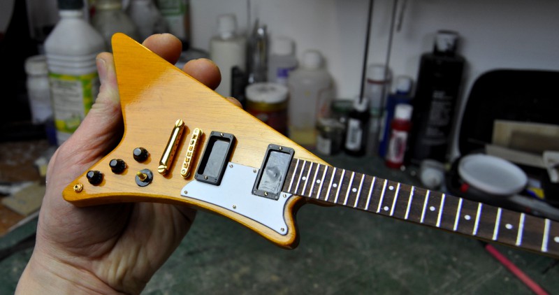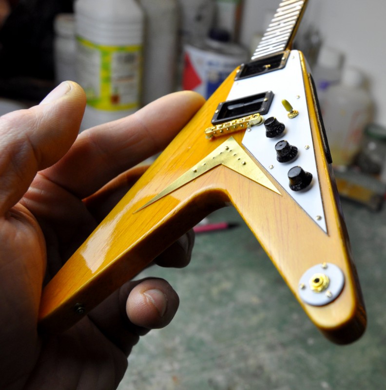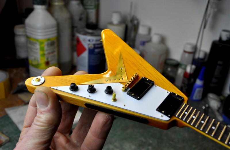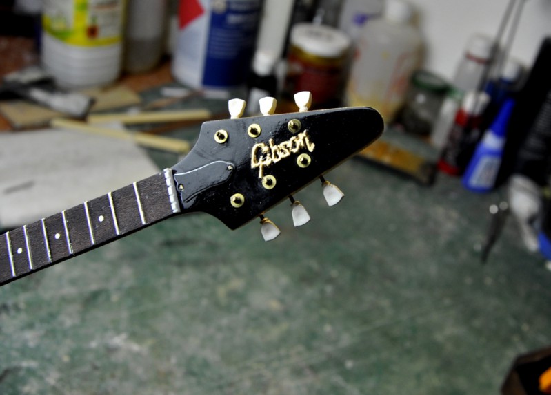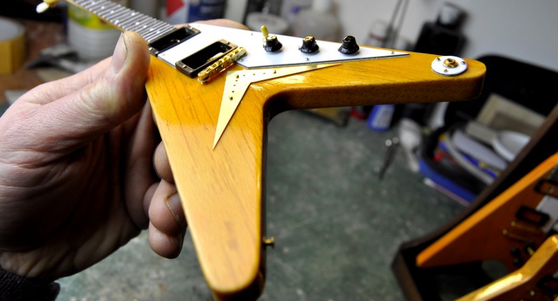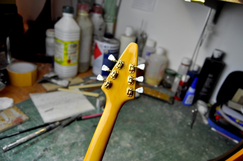 Du coup je continue avec la MODERNE, modèle mythique qui aurait été fabriqué à 2 exemplaires en 1957 pour le NAMM show, il y a des rééditions, des infos différentes sur la forme du corps, du pickguard... Bref, j'ai choisi de me baser sur la premier édition limitée qui date de 1982.