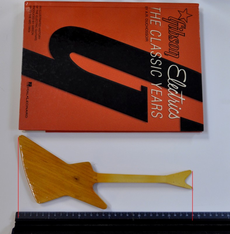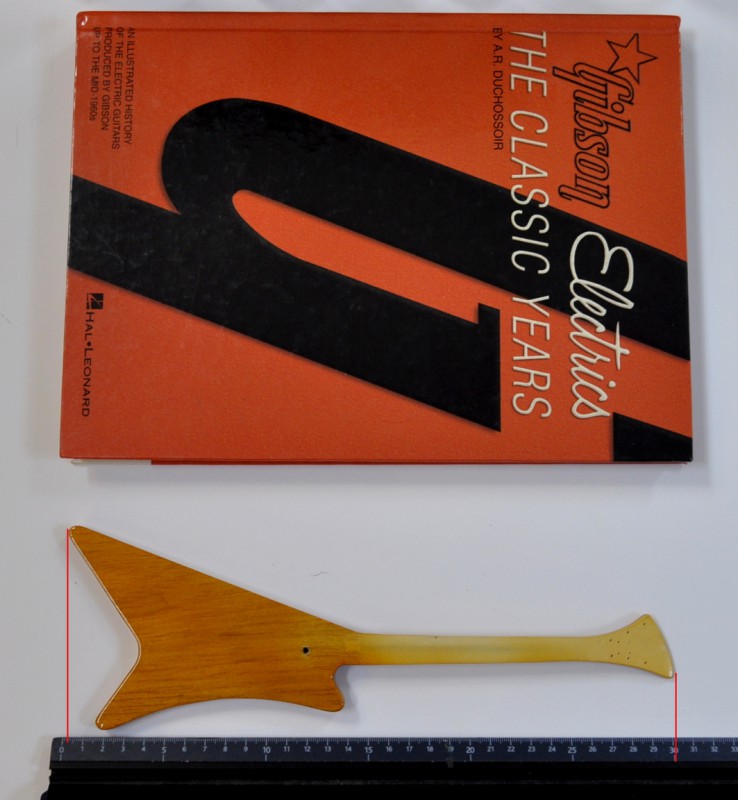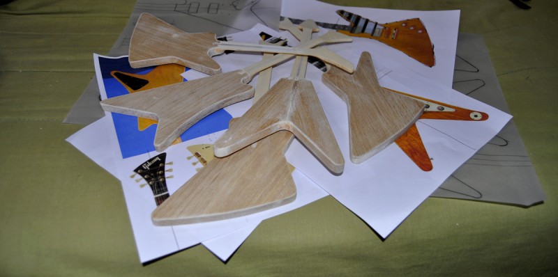 Je vais recréer à l'échelle 1/4 des répliques très précises de 5 guitares incontournables créées en 1958... La Flying V, la Moderne, la Futura et l'Explorer avec les 2 versions de têtes, la splitted et la banana. Toutes en version Korina avec l'accastillage or...