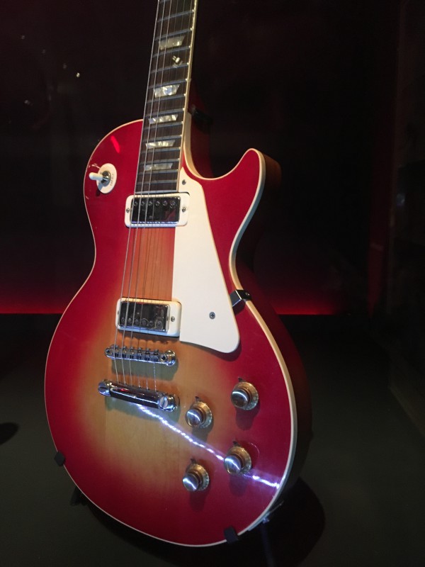 Les Paul Deluxe de 1973 utilisée par Pete Townshend entre 1972 et 1979, appartenant au lot de 6 à 8 instruments embarqués pendant le 73/74 tour des Who, au cours duquel Townshend a cassé le neck