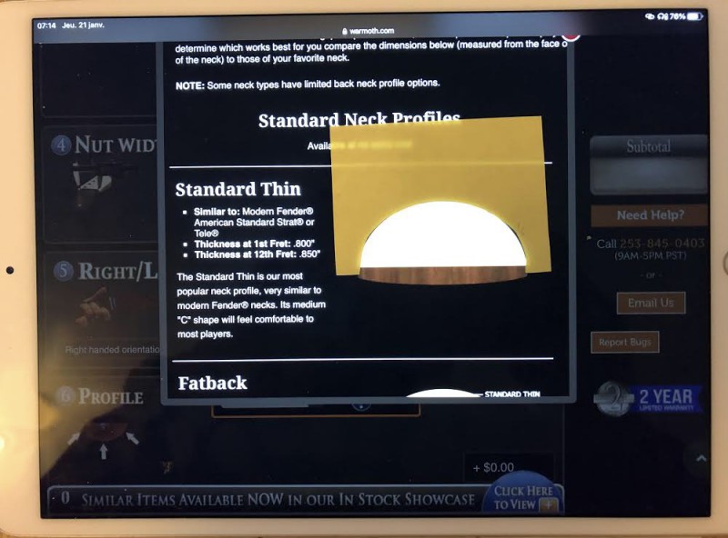 (Si t’as besoin je peux vite te donner un trick pour rapporter ton profile de manche sur un post-it et le comparer sur des sites comme Warmoth qui sont à l’échelle 1:1)