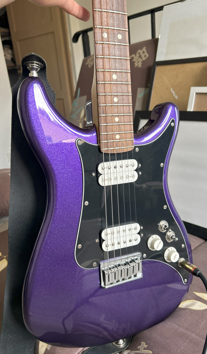 Donc je me suis dis : bon allez, tente la version Ensenada, on verra bien. Et me voila fraichement proprio d'une Fender Lead 3, made in Mexico, avec son fameux colori violet métallique, payée bien sûr BIEN MOINS CHER qu'une US.