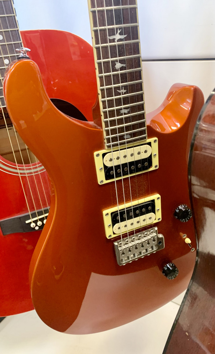 Il proposait une Gibson Les Paul deluxe sans doute fin 70 (avec les mini-humbuckers). La guitare était en bon état, à part un très moche porte médiator collé sur la table (ça peut paraitre totalement incongru aujourd'hui, mais certains pros qui enchainaient les concerts collaient ce type d'accessoires pour toujours avoir un médiator à portée de main à une époque).