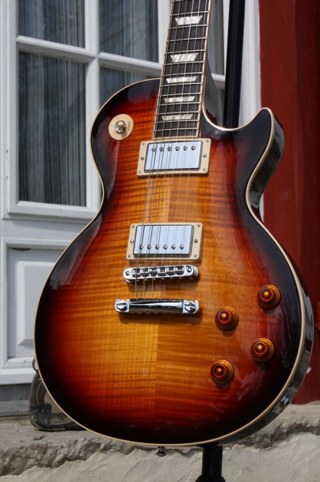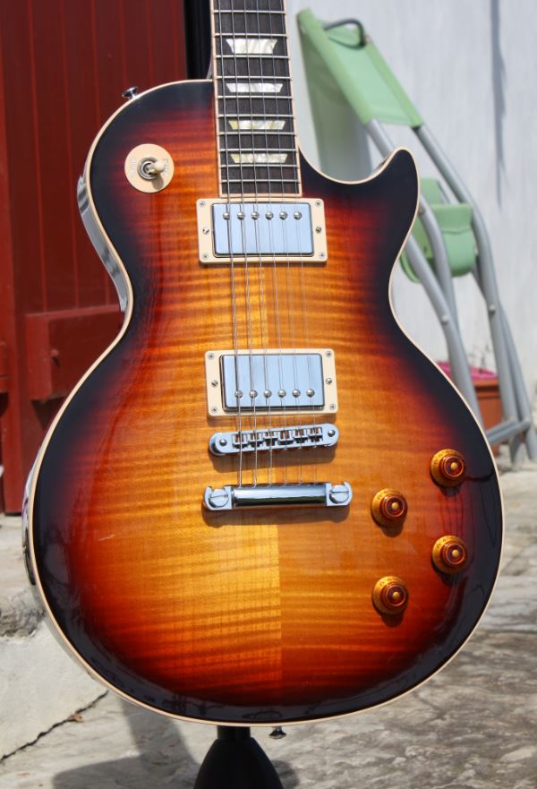 The volume controls for each pickup are also push-pull switches which offer a choice of either humbucking or single coil operation for each pickup.