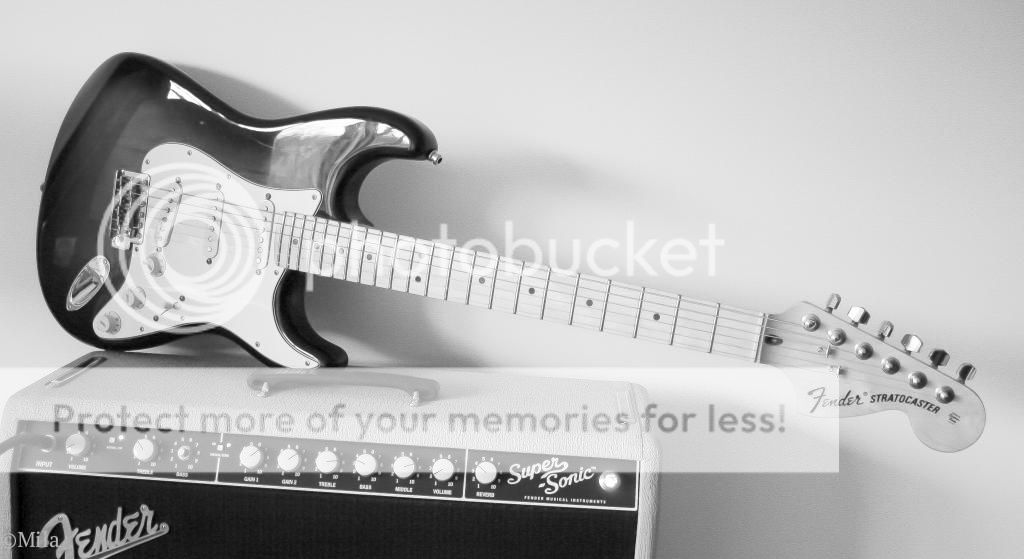 Une photo de ma Strat. Jouée cet AM sur le Supersonic, c'est le pied intégral, juste avec un poil de gain, pour du blues, c'est superbe.